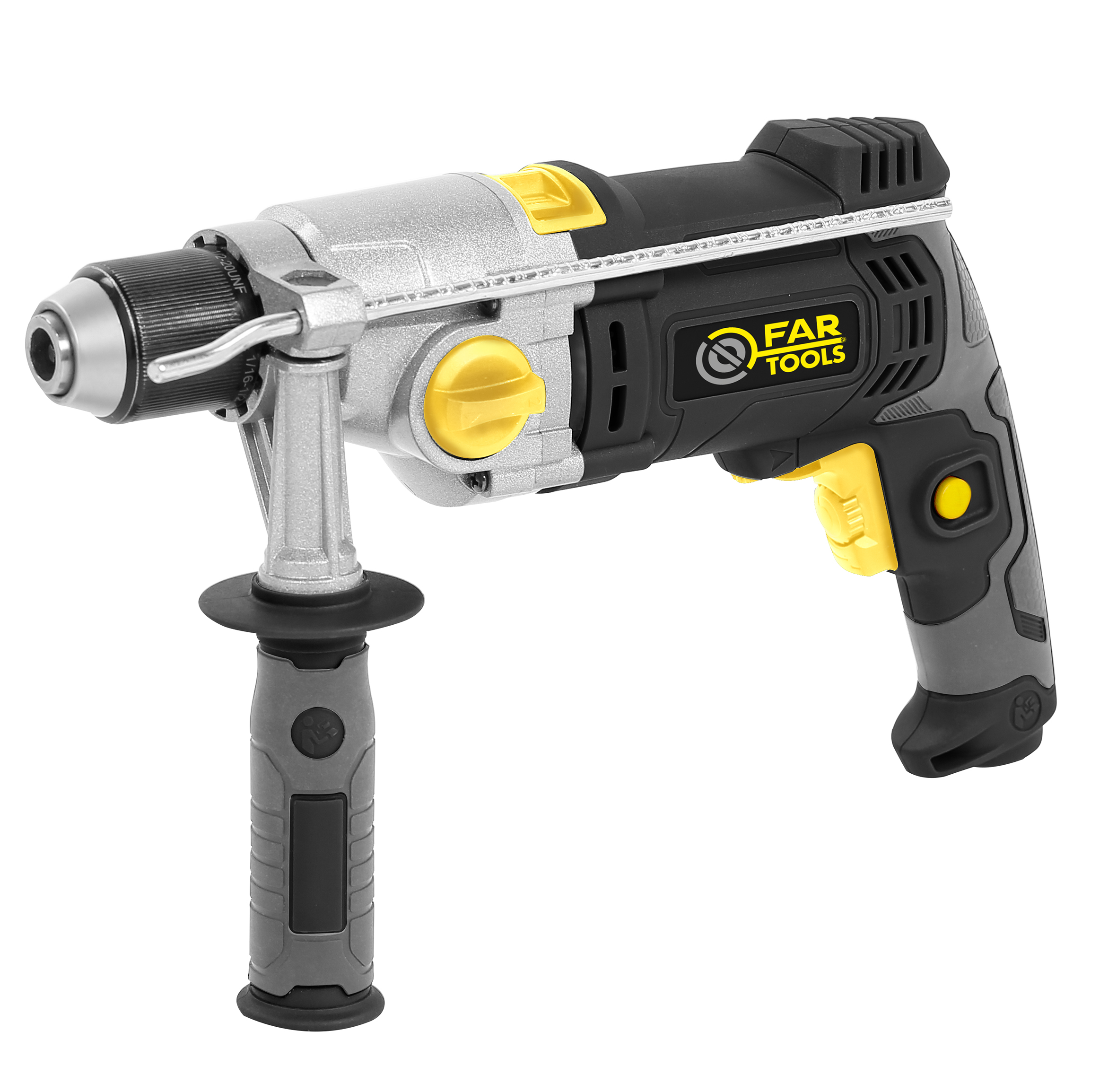 Pour visser, dévisser et percer. Puissance élevée, fonction percussion, tête aluminium et 2 vitesses mécaniques pour faciliter le perçage dans les matériaux durs. Variateur de vitesse. Poignée de force, sans clef, à l'avant.