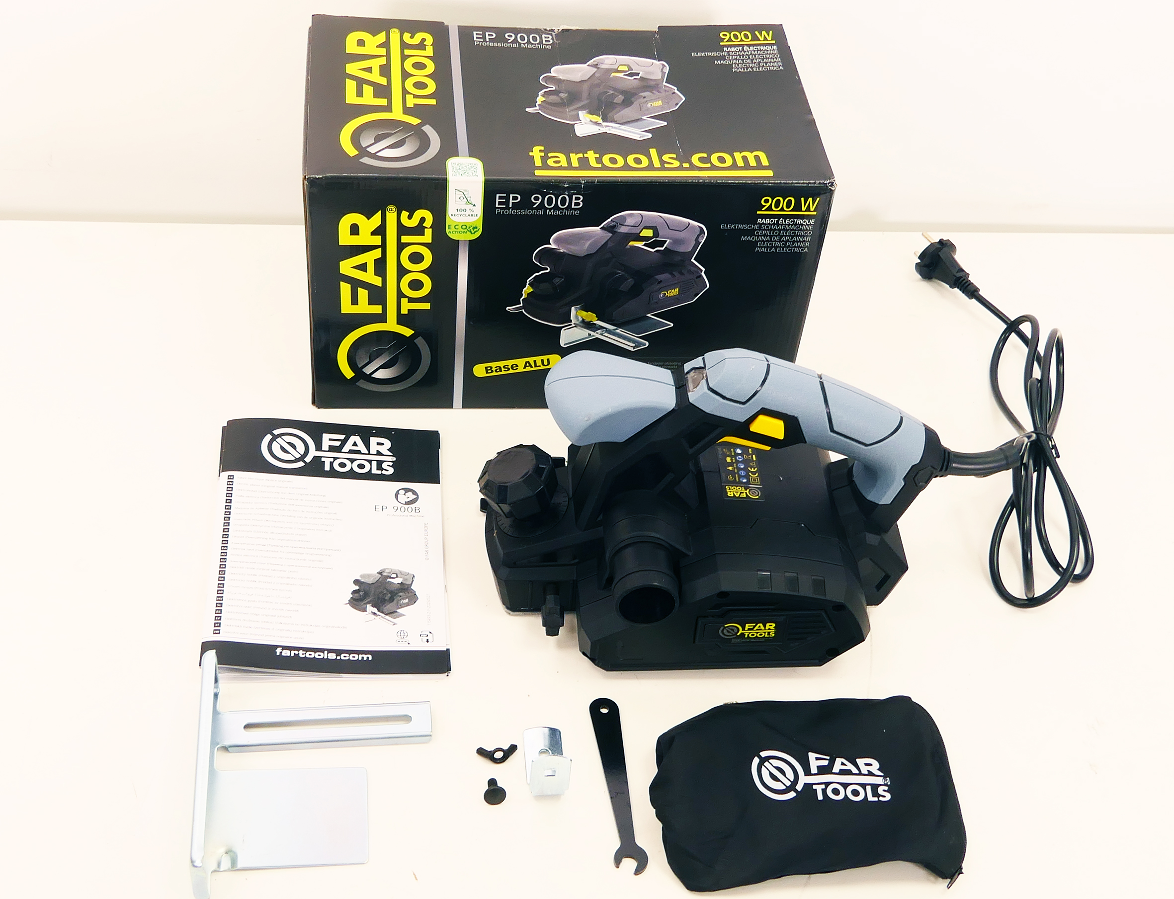 Pour raboter une pièce de bois et obtenir une surface plane. Cylindre avec 2 fers. Réglage de la hauteur travail par molette crantée. Fonction feuillure jusqu'à 12 mm. Fonction chanfreinage, 3 rainures, éjection des copeaux droite ou gauche.