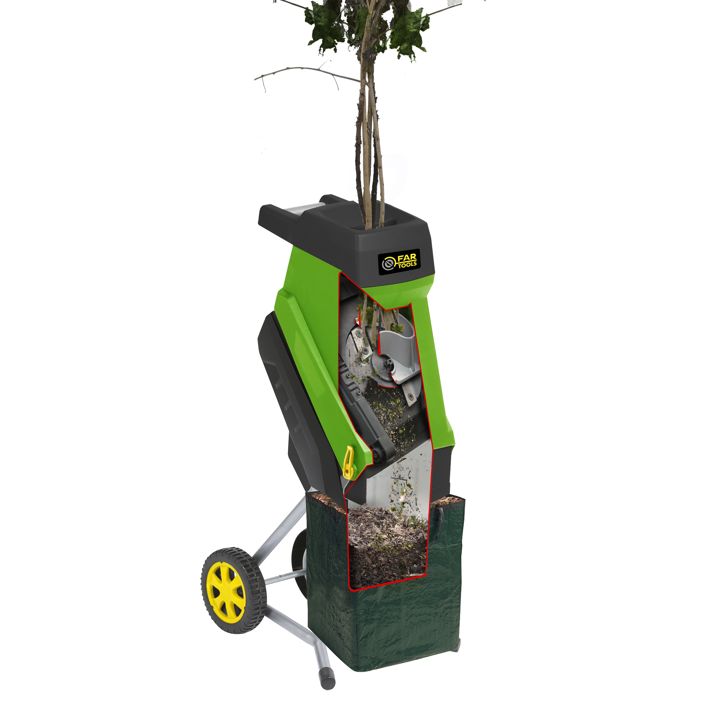 Le broyeur de végétaux 2500 W (construction plateau tournant à lames). Très efficace avec 2 couteaux réversibles; le volume de déchet vert est diminué de 10:1.Idéal pour préparer un conpost et réduire le volume des végétaux de votre jardin.
