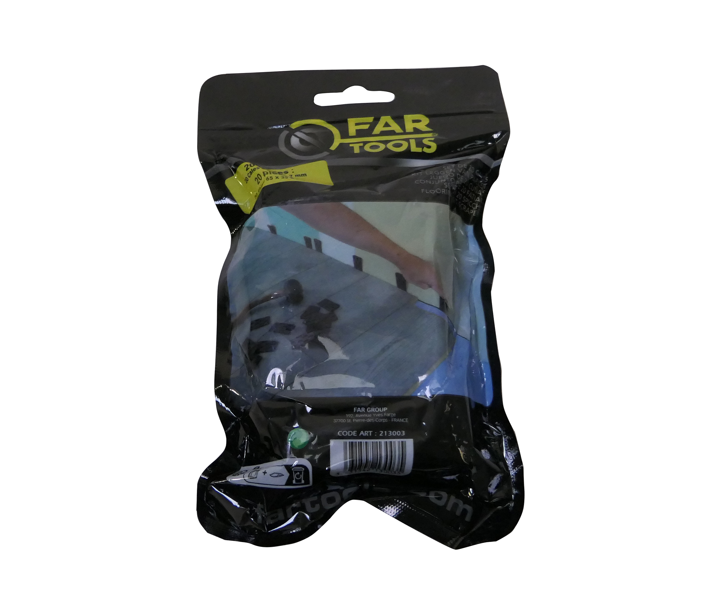 Pour réaliser la pose de parquet et stratifié. Le jeu de 20 cales permet de positionner les lames de parquet au ras du mur.